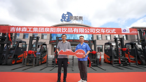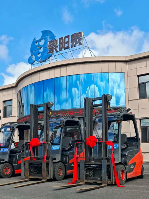 綠色物流再提速!3-3.5噸林德電動平衡重叉車交付吉林森工集團泉陽泉飲品公司