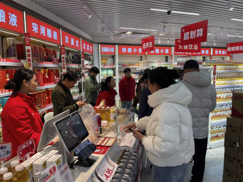 12月12日鄭州初雪時節,位于鄭州市金水區的宋河酒飲到家首店正式對外試營業,上午9點剛開門,周邊居民冒雪紛紛涌入,試營業的“冷啟動”被周邊顧客的熱情瞬間點燃了。