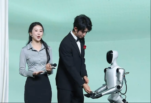 在發(fā)布形式上,京東將機器人深度引入新品發(fā)布流程。機器人不再只是互動裝置,而是與主持人、發(fā)布官協(xié)同推進發(fā)布節(jié)奏,通過實時對話回應產(chǎn)品性能、測試結(jié)果與使用場景問題,參與新品“講解—測試—解讀”的完整鏈路,推動新品信息從單向輸出升級為更具結(jié)構(gòu)性的人機協(xié)同呈現(xiàn)。