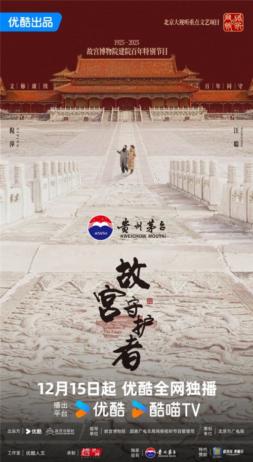 核心提示:12月15日,由貴州茅臺酒(精品)獨(dú)家冠名的優(yōu)酷人文紀(jì)實(shí)節(jié)目《故宮守護(hù)者》正式開播,節(jié)目運(yùn)用獨(dú)特視角,串聯(lián)個(gè)人命運(yùn)與國家寶藏,勾勒出一幅跨越地域、時(shí)代與身份的文化守護(hù)全景。12月15日,由貴州茅臺酒(精品)獨(dú)家冠名的優(yōu)酷人文紀(jì)實(shí)節(jié)目《故宮守護(hù)者》正式開播,節(jié)目運(yùn)用獨(dú)特視角,串聯(lián)個(gè)人命運(yùn)與國家寶藏,勾勒出一幅跨越地域、時(shí)代與身份的文化守護(hù)全景。