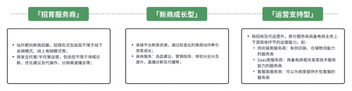 例如在產業帶服務商(從開店入駐到長期經營的服務)類型中,抖音電商將服務商劃分為“招育運營型”“新商成長型”和“運營支持型”,并設定 GMV 提升、孵化升級商家數、運營商家數等核心目標方向,以及店鋪診斷、制定計劃和動作拆解的策略指引。