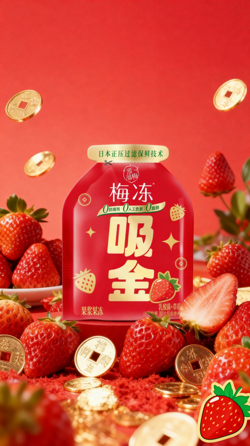 除此之外,溜溜梅梅凍還推出了散貨包裝,方便消費者按需購買。節(jié)日家宴后大家圍坐分享的零食碗,還是朋友聚會時錯落擺放的小食拼盤,亦或是走親訪友時隨手搭配的伴手小食……口感清新、Q彈爽滑的溜溜梅梅凍都是其中點睛的一筆。“暴富”“桃運”“吸金”等自帶新年吉利寓意的包裝字樣,不僅讓每一顆梅凍都沾染上濃濃的年味,更把“吃零食討個好彩頭”的心意藏進舌尖,每一口都是一份甜潤又討喜的新年小確幸。
