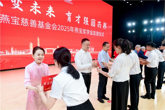 2025年“燕寶獎學金”發放儀式上,受獎勵學生代表合影留念