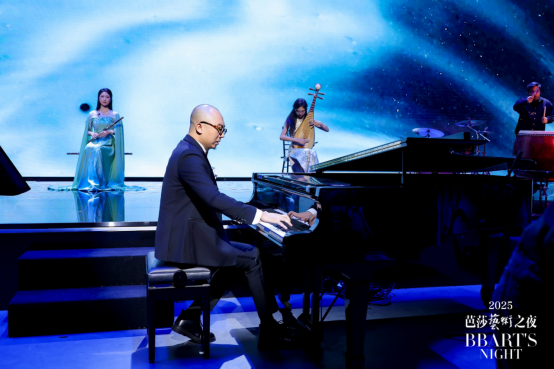 《山海晞》為晚宴開場,音符如群山初醒,聲部各自生長,終匯成一片有呼吸的旋律潮汐;劉曉禹的《幻想即興曲》在黑白鍵間展開理性與感性的對話,即興中見精微;李晶晶的《笑之歌》以花腔織就一道閃光的音階軌跡;哈拉木吉《云》的琴弦攜草原之風而來,帶來土地深處的古老敘事;方書劍的《Melodramma》作為終章,將整晚的星光與溫度凝于旋律之中。
