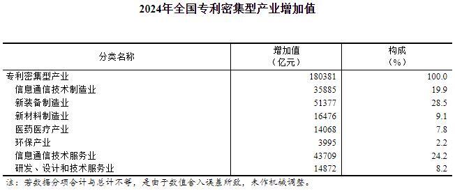 2024年全國專利密集型產業增加值超18萬億元