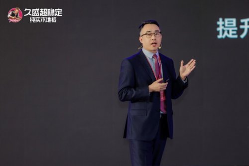 面對激烈的市場競爭,久盛地板有限公司營銷總經理李彭濤以“明確目標,聚焦增長”為主題,進行新戰略解讀,給出了明確的“增長方法論”,從產品、終端、營銷、品牌等維度詳細闡述了公司的賦能體系。