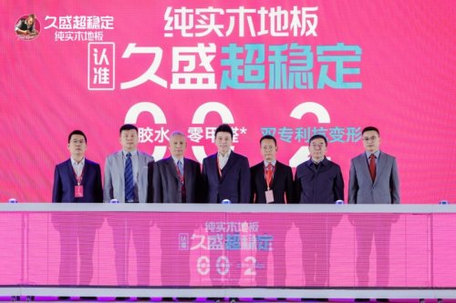 隨后,久盛地板有限公司董事長張凱、久盛地板有限公司營銷總經理李彭濤、里斯品類創新戰略咨詢全球CEO、中國區主席張云、中國木材與木制品流通協會會長李佳峰、中國傳媒大學擘雅品牌研究院院長何海明、央融傳媒總經理鄭海峰上臺共同啟動超穩定純實木地板品牌升級儀式,正式發布傳播語“純實木地板,認準久盛超穩定;0膠水0甲醛,雙專利抗變形”。這不僅是久盛對消費者的鄭重承諾,更是久盛26年專注純實木的初心寫照。