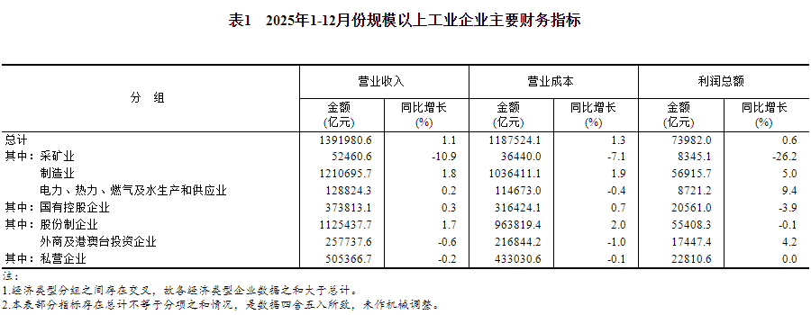 2025年全國規模以上工業企業利潤增長0.6%