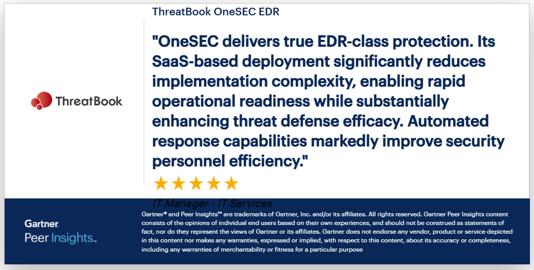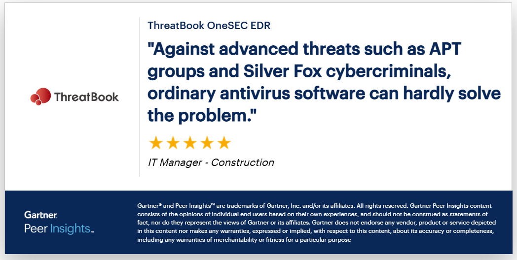 本次報告中,微步收獲高科技、服務、金融、建筑、零售等多行業大企業用戶的高度認可,在產品能力、部署體驗、支持體驗等幾大核心維度均斬獲滿分好評。對微步而言,這些評價充分印證了微步在國內終端安全領域的行業領先實力與標桿地位。多數用戶評價顯示,微步的高級威脅檢測響應能力出色,能有效抵御APT組織、新型流行黑產等威脅,且SaaS化的部署模式高效、便捷,符合國際主流技術路線,現摘取部分評價如下: