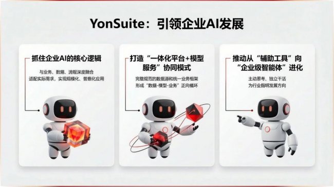 這條進化路,其實就是企業AI從“能用”到“好用”、再到“管用”的一個縮影。而YonSuite一直踩在點上,用“一體化平臺+本體服務”這套組合拳,給成長型企業遞上了一個能真正用得起來的AI方案。成長型企業搞AI:理想很豐滿,現實太骨感