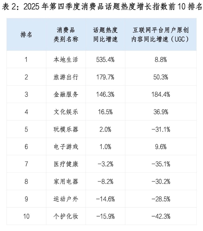在話題熱度方面,本地生活、旅游出行和金融服務位列話題熱度同比增速前三。