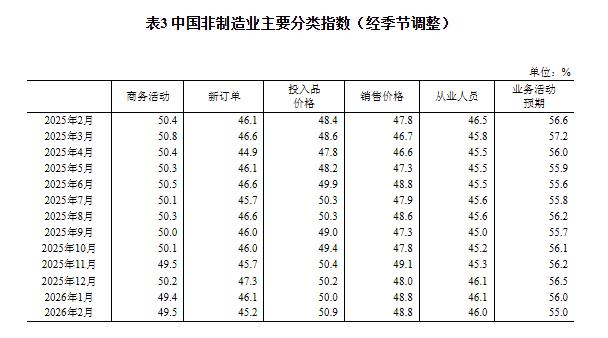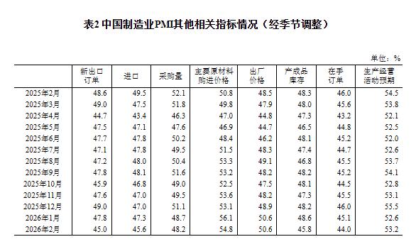 2026年2月中國(guó)采購(gòu)經(jīng)理指數(shù)運(yùn)行情況