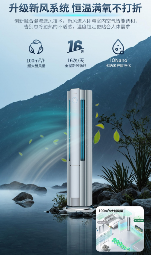 在空氣凈化方面,產(chǎn)品采用“四重過濾+水納米防護(hù)+三重除菌”的立體凈化架構(gòu)。HEPA四重凈化濾網(wǎng)配合100m³/h的新風(fēng)換氣量,可實(shí)現(xiàn)每天16次全屋新風(fēng)循環(huán),無需開窗即可持續(xù)送入潔凈富氧空氣,破解冬夏季節(jié)“室內(nèi)憋悶”的通風(fēng)難題。