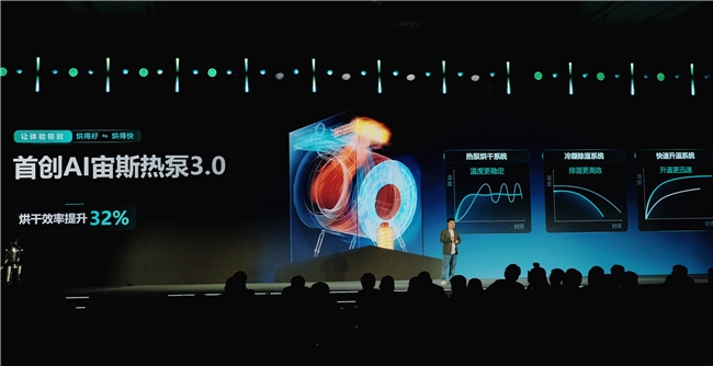 行業(yè)首創(chuàng) Ai 宙斯熱泵 3.0 三效烘干系統(tǒng),再次突破行業(yè)熱泵洗烘一體機的技術壁壘,融合熱泵精準控溫、冷凝快速除濕、電輔熱快速升溫三大核心技術,烘干效率提升 32%,42℃低溫柔烘不傷衣,配合三變頻 1:1 正反勻透烘,實現(xiàn) “烘得快又烘得好”;