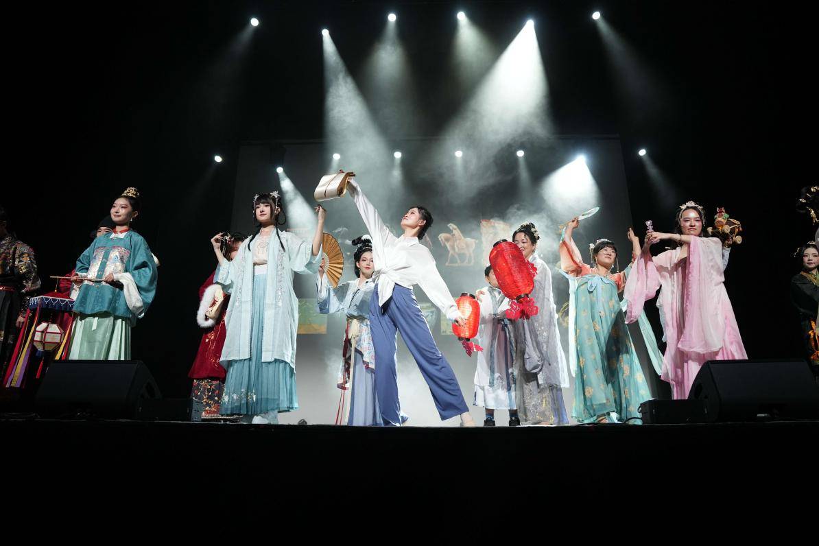 整場晚會中,中國傳統(tǒng)文化與青年創(chuàng)意交相輝映。功夫表演剛勁有力,戲曲串燒韻味悠長,而以中華文物為靈感的國風(fēng)走秀《華夏珍萃卷》成為當(dāng)晚的一大亮點(diǎn)。演員們身著融入青銅紋樣、敦煌色彩等文化元素的服飾依次登場,在燈光與音樂的交織中,仿佛一幅緩緩展開的文明長卷。從歷史器物中的紋樣符號到舞臺上的現(xiàn)代設(shè)計(jì),古老文化在年輕人的演繹下煥發(fā)出新的生命力。當(dāng)模特緩步走過舞臺時,不少觀眾舉起手機(jī)記錄這一刻。來自英國的觀眾Emily在演出后表示,她此前只在博物館中見過類似的東方紋樣,“沒想到今天能以這樣時尚的方式看到它們,這讓我對中國文化產(chǎn)生了更多興趣。”
