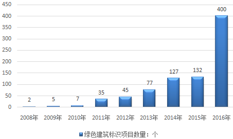 2008-2016年廣東省綠色建筑評價標識項目數(shù)量走勢圖