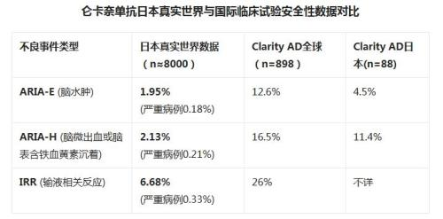 4. 真實世界中的安全性數(shù)據(jù): 在日本約8000例侖卡奈單抗的使用案例中,不良事件發(fā)生率數(shù)據(jù)如下:
