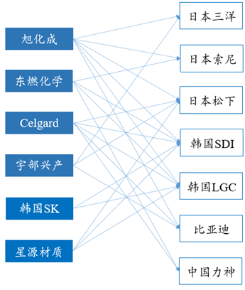 全球主要隔膜生產企業供應關系