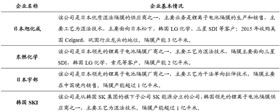 國外鋰離子電池隔膜行業內的主要企業基本情況