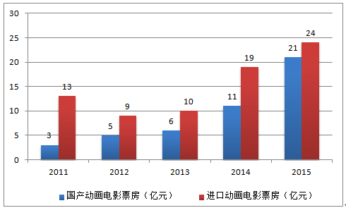 2011-2015年中國國產電影及國產動漫電影票房統計