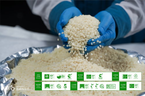 藍晶微生物的高品質(zhì)PHA材料已獲得全面認(rèn)證,依托合成生物技術(shù),在價格與供應(yīng)方面具備顯著優(yōu)勢。相比傳統(tǒng)塑料可能需數(shù)百年降解,Bluepha® PHA 可在半年內(nèi)自然分解為水與二氧化碳,并具備海洋、淡水、土壤等全域降解能力,目前也已通過中、美、歐、日多地區(qū)的食品接觸認(rèn)證。