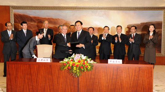 2009年12月8日,中國石油化工股份有限公司與日本三井化學株式會社就苯酚丙酮項目簽訂了關于新建項目的備忘錄,同時就三元乙丙橡膠 (簡稱EPT※1)項目簽訂了意向書。預計兩項合資項目的投資總額將達到600億日元。 股份公司副董事長、總裁王天普,日本三井化學社長田中稔一代表雙方在協議上了簽字。
