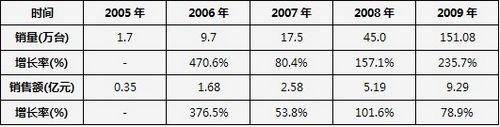 表1 2005-2009年中國數碼相框市場銷量及增長率
