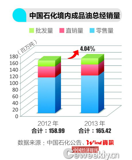 2012年年報(bào)顯示,公司營(yíng)銷及分銷事業(yè)部全年?duì)I業(yè)收入14719億元,營(yíng)業(yè)利潤(rùn)427億元。由此可見,拿出上限30%的股權(quán)與民間資本分享,意味著最多將128億元利潤(rùn)拱手讓人。而這個(gè)數(shù)字可能還保守。最新數(shù)據(jù)顯示,2013年中石化境內(nèi)成品油總經(jīng)銷量約為1.65億噸,比2012年增長(zhǎng)4%。