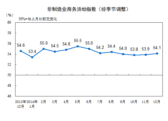 2014年12月中國非制造業(yè)商務活動指數(shù)為54.1%