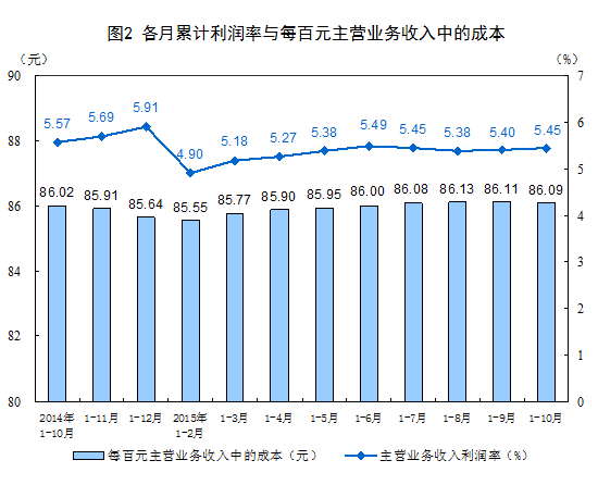 1-10月份,規模以上工業企業實現主營業務收入893727.9億元,同比增長1%;發生主營業務成本769374.2億元,增長1.1%。