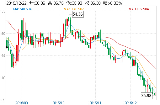 紐約時間12月22日14:30,NYMEX2月原油期貨合約上漲0.33美元或0.92%,收報每桶36.14美元。