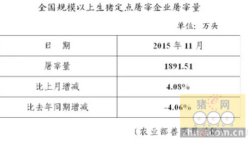 核心提示: 屠宰量偏大利好豬價據農業部數據顯示,2015年11月份中國規模以上生豬定點屠宰企業屠宰量為1891.51萬頭,比2015年10月增加4.08%,比2014年1屠宰量偏大利好豬價