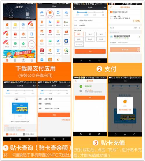翼支付NFC功能的添加,不僅實現北京、廈門、青島、濰坊、金華、紹興、臺州等城市的一卡通充值,還實現生活O2O方面,與超過10萬多家商超、加油站網店的點對點支付。