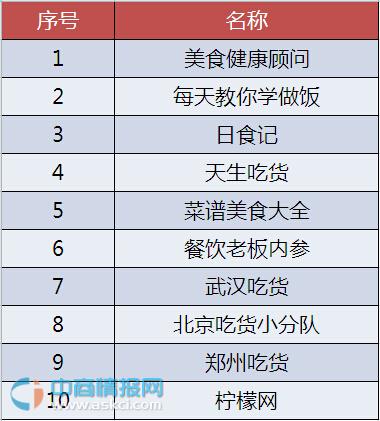 核心提示: 如今,微信基本上成為了智能手機的“標配”,根植在微信中的公眾號也逐漸成為網民們獲取資訊的重要渠道。然而類別繁多的公眾號,也讓不少網民有點“頭大”,因而如何在冗如今,微信基本上成為了智能手機的“標配”,根植在微信中的公眾號也逐漸成為網民們獲取資訊的重要渠道。然而類別繁多的公眾號,也讓不少網民有點“頭大”,因而如何在冗雜的公眾號中快速找到合適的、有價值的信息源就顯得極為重要。為此,中國產業發展研究網整理了2015年十大美食類微信公眾號,此次上榜的有美食健康顧問、每天教你學做飯、日食記、天生吃貨、菜譜美食大全、餐飲老板內參、武漢吃貨、北京吃貨小分隊、鄭州吃貨及檸檬網等優秀公眾號。