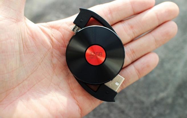相比手機,這款產品算是個小附件,紅心黑色唱片造型是魅族從M8便開始使用至今的音樂App圖標設計,兩端USB口可以連接手機或電腦。