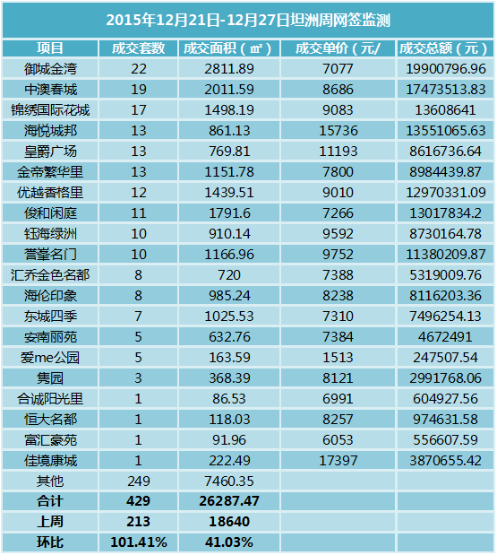 坦洲方面,累計網簽429套,環比上漲101.47%;銷售面積26287.47㎡,環比上漲41.03%。