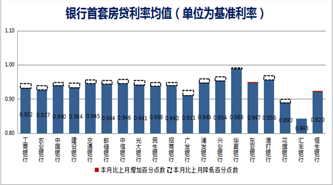 核心提示: 在當(dāng)前,樓市去庫(kù)存壓力增大,銀行貸款競(jìng)爭(zhēng)加大的背景下,加大房貸利率折扣仍是大勢(shì)所趨。主要銀行平均利率折扣:匯豐銀行最低圖 主要銀行首套房利率折扣均值融360監(jiān)在當(dāng)前,樓市去庫(kù)存壓力增大,銀行貸款競(jìng)爭(zhēng)加大的背景下,加大房貸利率折扣仍是大勢(shì)所趨。