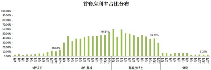 首套房貸款利率分布:首套房?jī)?yōu)惠占比為68.18%
