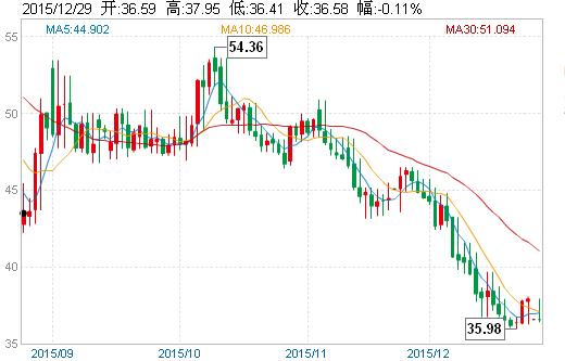 紐約時間12月28日14:30,NYMEX2月原油期貨合約下滑1.29美元,或3.4%,收報每桶36.81美元,結束連續四日的漲勢。