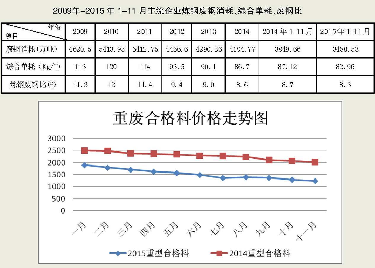核心提示: 2015年,鋼材市場持續低迷,宏觀經濟刺激對鋼材需求拉動有限,下半年未能出現市場預期的需求好轉情況,供需矛盾加劇,終端消費疲弱引發鋼材價格大幅下跌,鋼廠虧損嚴2015年,鋼材市場持續低迷,宏觀經濟刺激對鋼材需求拉動有限,下半年未能出現市場預期的需求好轉情況,供需矛盾加劇,終端消費疲弱引發鋼材價格大幅下跌,鋼廠虧損嚴重,減產、停產增多。受鋼材市場持續低迷的影響,2015年國內廢鋼資源需求減少,交易量偏低,廢鋼價格呈低位波動走勢。