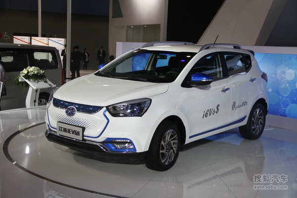 iEV6S外觀尺寸為4135×1775×1560mm,整備質量1310kg,前臉保持了江淮S2的整體輪廓,在此基礎上融入了更多純電動設計元素,還取消了前進氣格柵。中央江淮LOGO采用藍色底色,車身多出也有同色裝飾,突出了純電動的特征。