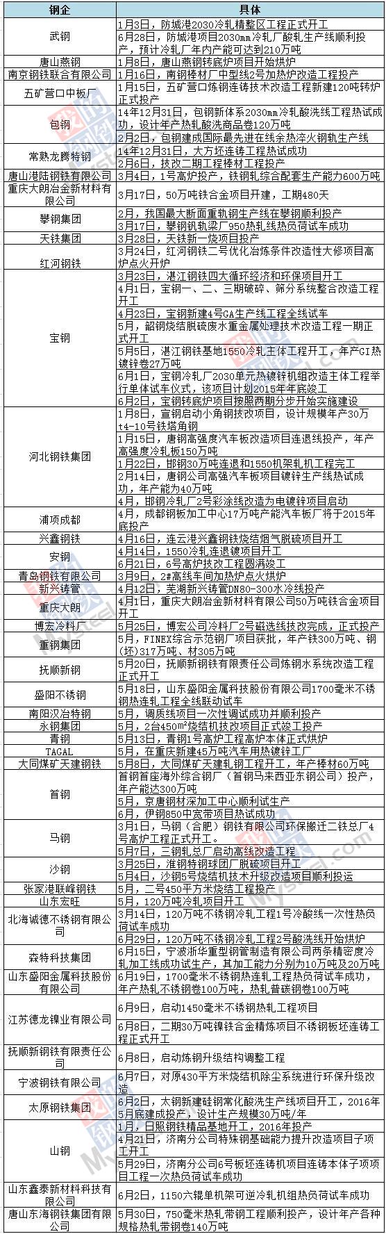 【行業盤點】2015上半年部分鋼企產能擴建情況匯總