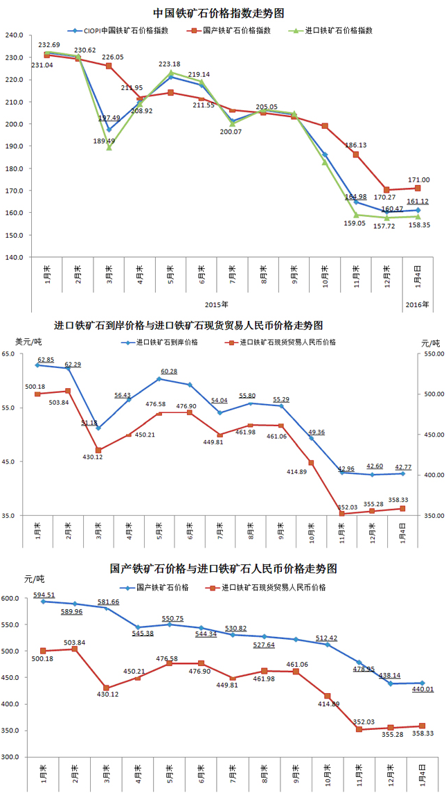 2016年1月4日中國鐵礦石價格指數對比分析