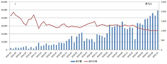11月份,中國液奶進口平均價格(CIF)為1,025美元/噸,比上月上漲了38美元,漲幅3.8%,同比下跌了235美元,跌幅18.7%。