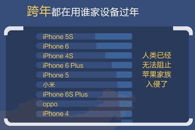 另外,跨年設備中,iPhone居多。人類已經無法阻止蘋果家族入侵了。