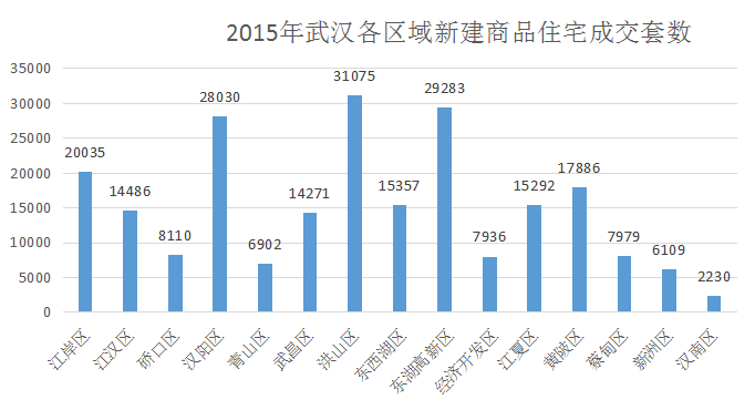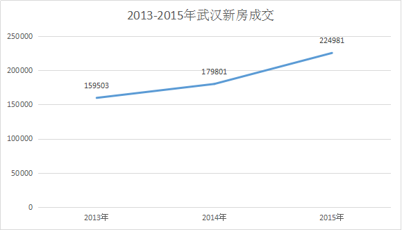 據武漢市房產信息網數據,2015年1-12月,武漢新建住房共成交224981套,相比于2014年的179801套同比上漲約25.13%。據武漢一房產機構統計,2015年武漢高端住宅也呈現出“井噴”態勢:均價12000元/平方米以上高端住宅熱銷,全年成交302萬平方米,較2014年增長144%,超過2011至2014年四年的總量。
