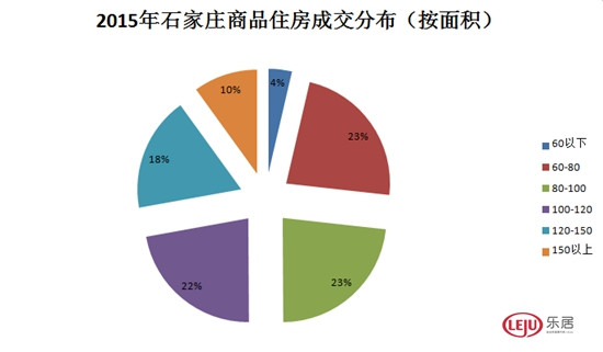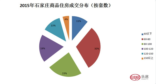 2015年,石家莊住宅備案60平方米以下戶型備案4148套,占比11%,備案面積121593平方米,占比4%;60-80平方米戶型備案11530套,占比30%。備案面積774580平方米,占比23%;80-100平方米戶型備案8735套,占比23%,備案面積775824平方米,占比23%;100-120平方米戶型備案7030套,占比19%,備案面積745622平方米,占比22%;120-150平方米戶型備案4746套,占比13%。備案面積598624平方米,占比18%;150平方米以上戶型備案1634套,占比4%,備案面積333904平方米,占比10%。