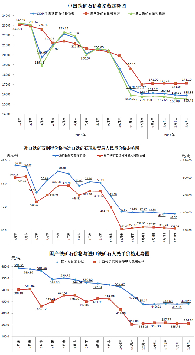 2016年1月7日中國鐵礦石價(jià)格指數(shù)對比分析