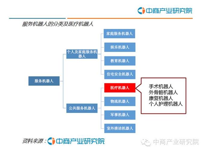 現代手術進入微創時代以來,創新技術的發展為外科手術帶來了巨大的技術革新,提供了功能強大的操作工具以克服傳統的微創手術定位精度不高、手術時間過長、術者易疲勞與顫抖、缺乏三維醫學圖像導航等技術缺陷,對于微創手術技術的需求推動了醫療機器人技術的應用。醫療機器人屬于服務機器人的一種,醫療機器人領域的細分品類,包括手術機器人、外骨骼機器人、個人護理機器人及康復機器人等。在國際市場上,手術機器人和外骨骼機器人這兩個領域已經出現了多個成功市場化的優秀產品系列,目前有比較成熟的產品的醫療機器人主要也集中在外科手術機器人和外骨骼機器人方面。