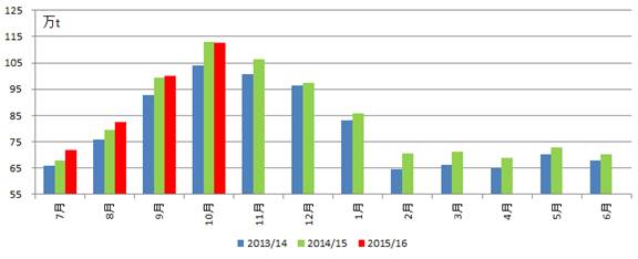 2015年10月份澳大利亞原料奶產量情況
